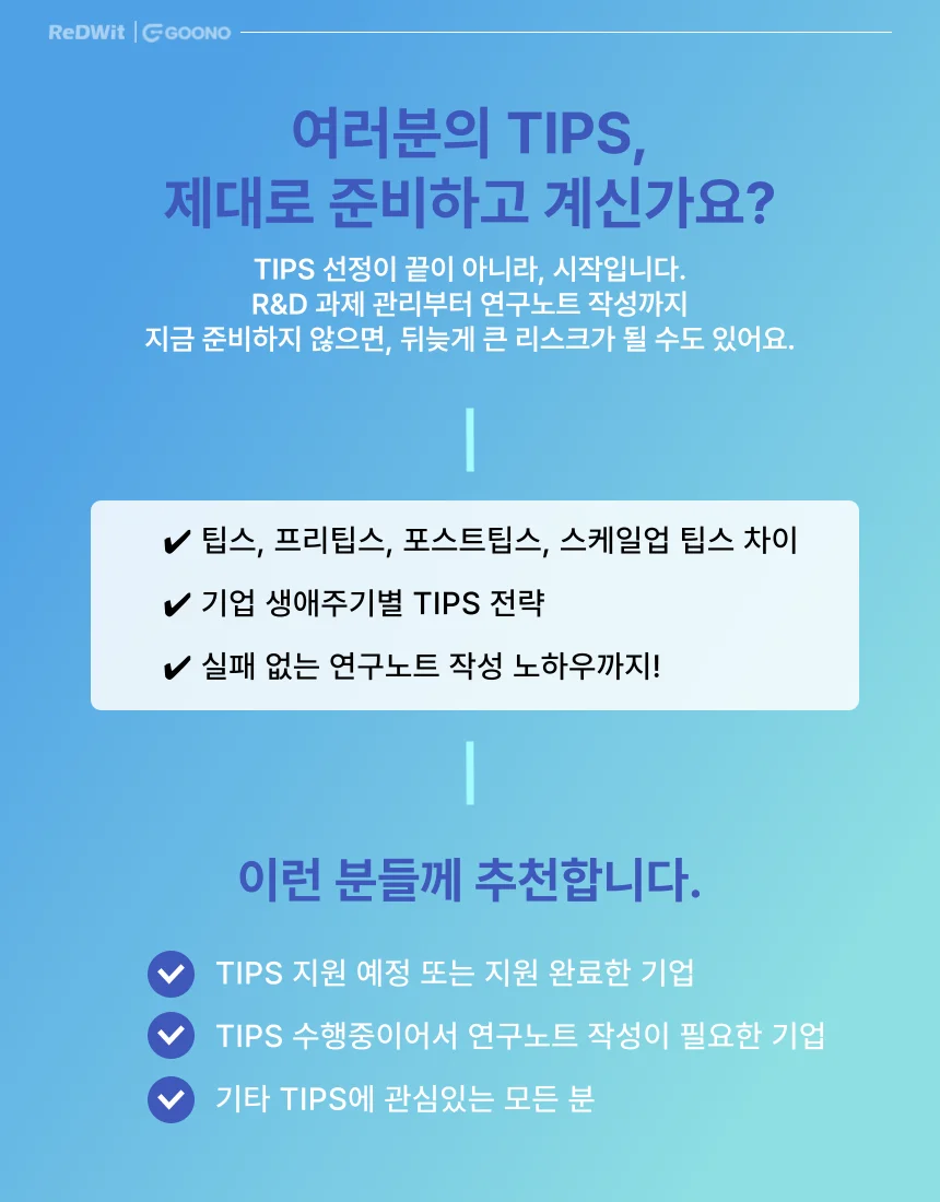 TIPS, 선정만 하면 끝일까요? 사업계획서부터 연구노트까지, 실패 없는 팁스 수행을 위한 실전 가이드 공개!