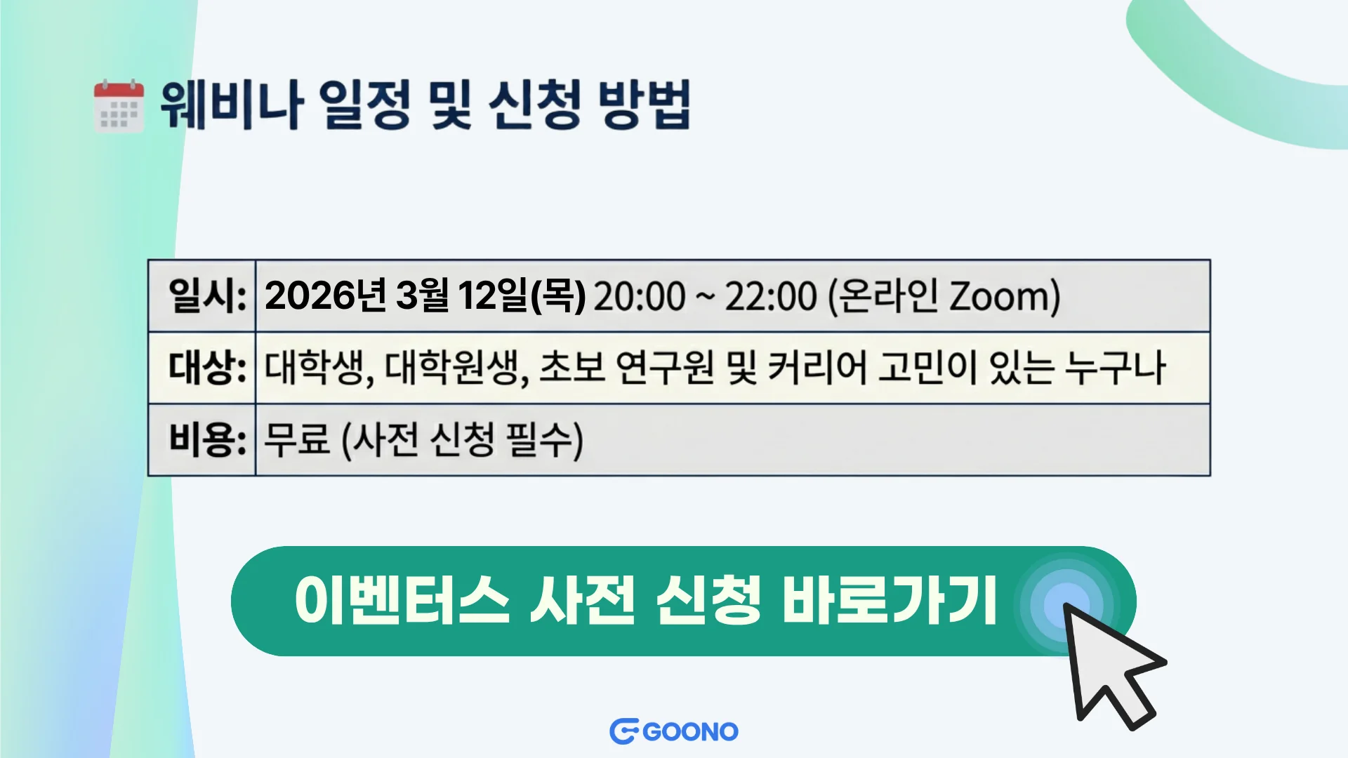 이 웨비나는 여러분의 연구 효율을 바꾸고 커리어의 방향성을 잡아줄 기회입니다.