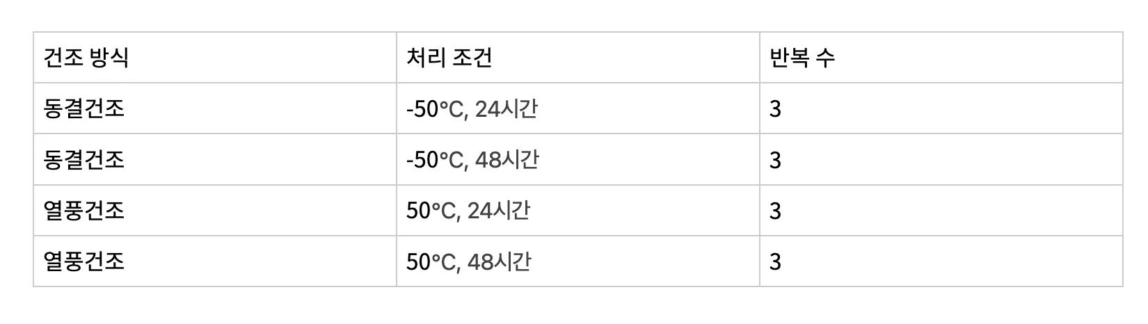 연구 조건과 결과를 조금 더 깔끔하게 보여줄 수 있도록 테이블을 이용해 정리할 수 있습니다. 정렬이나 스타일도 적용할 수 있어요.